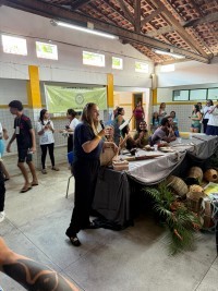Durante todo o momento de interação os alunos puderam conversar sobre o dia dia da aldeia, tirar dúvidas e receberam uma aula da professora indígena Rita Jaciara sobre a invasão holandesa na Baía da Traição.