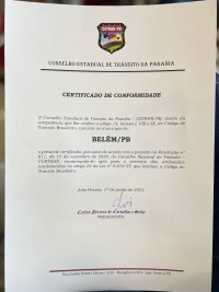 O Município de Belém recebeu do CONSELHO ESTADUAL DE TRÂNSITO DA PARAÍBA (CETRAN/PB) o certificado de conformidade para o exercício das atribuições estabelecidas pelo Código de Trânsito Brasileiro.