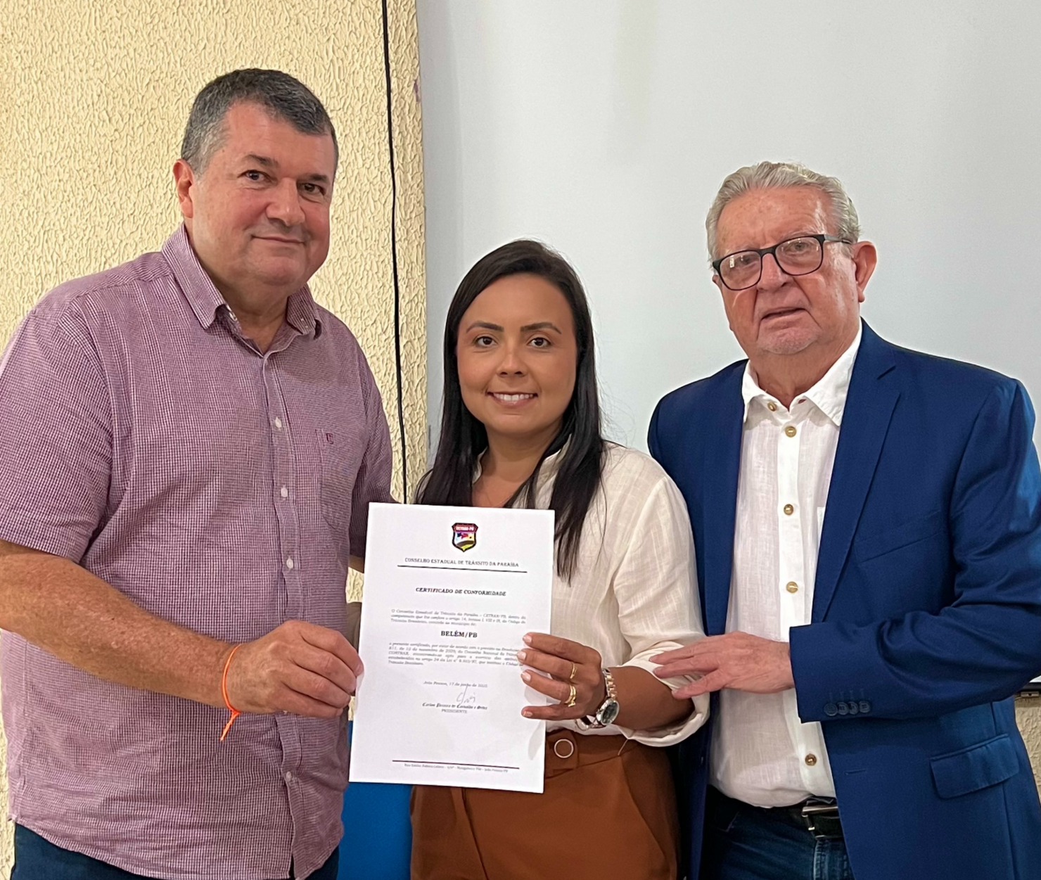 A entrega foi realizada na capital João Pessoa na última terça-feira, 17. A Secretária de Mobilidade Urbana, Renata Lima, esteve representando o município no evento e recebeu o documento das mãos do presidente do CETRAN/PB, Carlos Pereira de Carvalho e Silva.