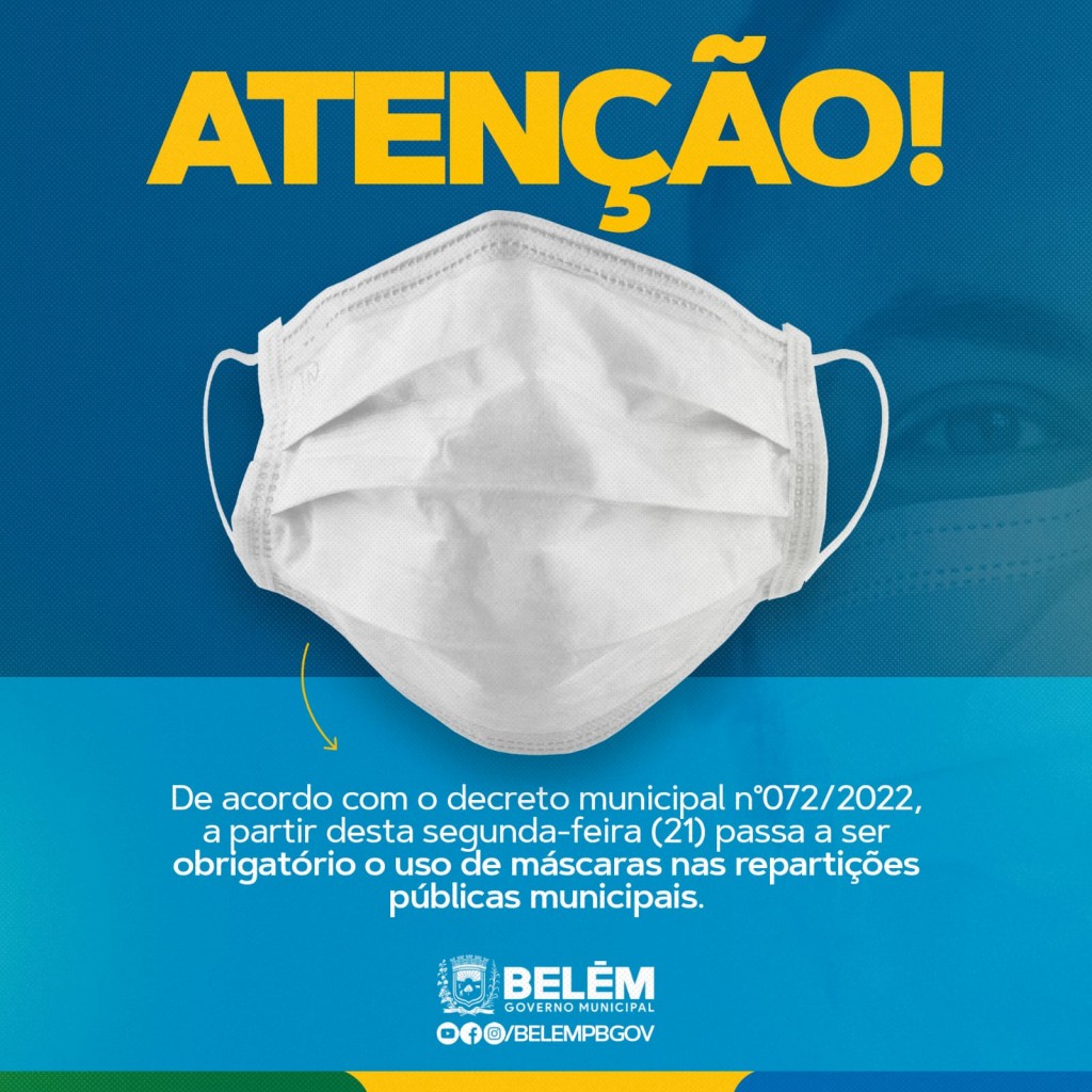 A Prefeitura Municipal publicou nesta segunda-feira (21) o decreto de número 072/2022 que determina o uso obrigatório de máscara dentro das repartições municipais da cidade de Belém.
