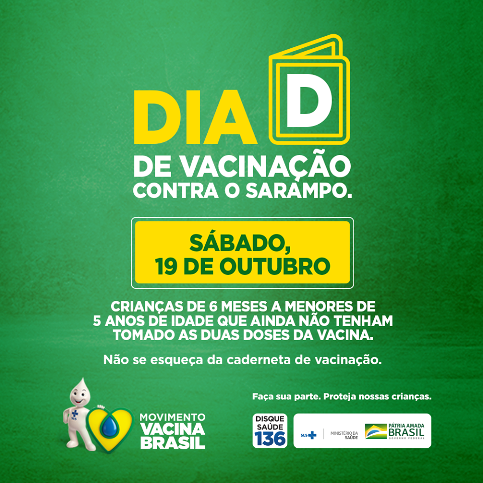 A Campanha de Vacinação contra o Sarampo continua em todos os postos de saúde do município de Belém, com foco em dois grupos. Até o dia 25 de outubro a campanha irá imunizar crianças de 6 meses a menores de 5 anos de idade, com o dia “D” de vacinação no próximo sábado, dia 19 de outubro, das 8h às 17h