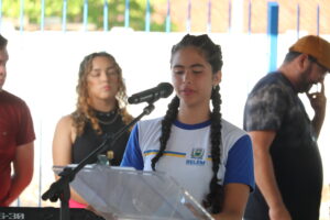 Dentre os presentes inúmeras pessoas e alunos foram prestigiar o momento, dentre eles a aluna Rayssa Almnys, matriculada no 9° ano para este ano, fez um fala de agradecimento em versos à gestão pelo olhar de cuidado e zelo com o lugar onde eles estudam.