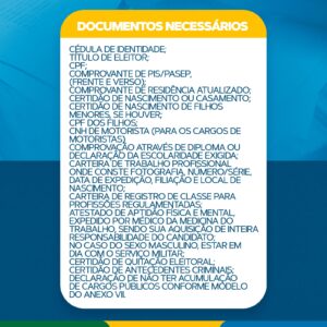 Confira abaixo a lista de documentos necessários para serem entregues.
