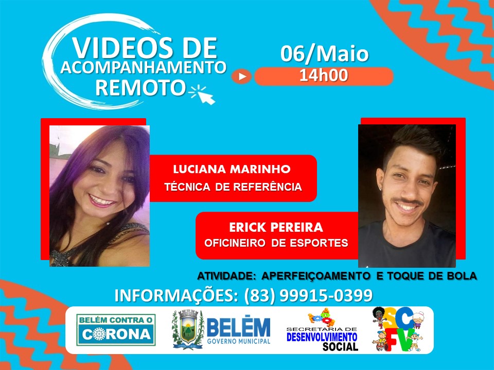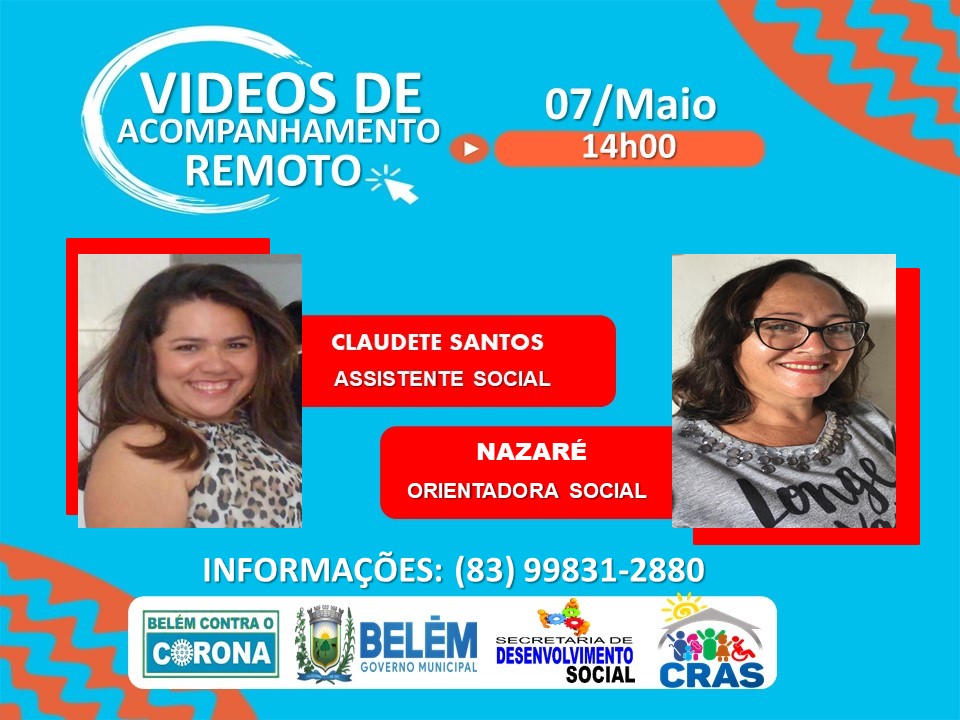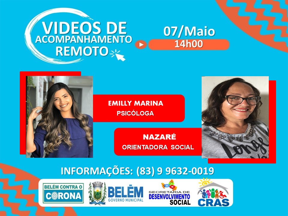 A Prefeitura de Belém, através da Secretaria de Desenvolvimento Social, lança a partir desta terça-feira (05) uma série de vídeos com orientações para os usuários de programas e atividades sociais como Bolsa Família, Criança Feliz, Ação Zumba, SCFV e CRAS, durante o período do necessário isolamento social para conter a disseminação da Covid-19.